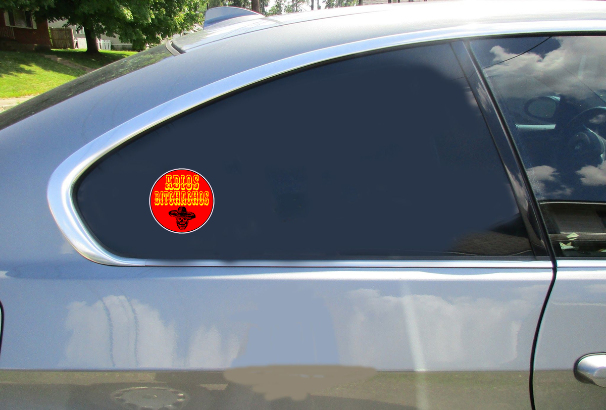 This Adios Bitchachos Sticker is printed on high quality sticker vinyl intended for outdoor use. These high quality durable stickers will stick to almost any clean flat surface indoors or outdoors. Buy this custom Adios Bitchachos Sticker in the size of your choice and use it for a car sticker, truck sticker, bumper sticker, laptop sticker, phone sticker, beer cooler sticker, and much more!