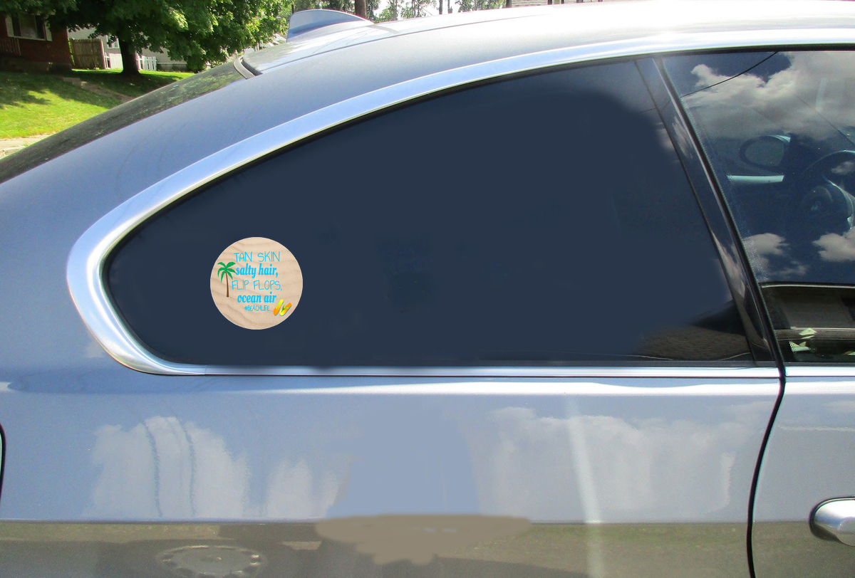 Stickers are measured by the longest side, meaning if you order a 3 inch sticker then the sticker will only be 3 inches in length or height, whichever is greater. Smaller sizes such as 3 and 4 inches would be good for laptop stickers. 4, 5, and 6 inch stickers are the most popular sizes on back windows for cars and trucks. 7, 8, and 9 inch stickers should be used for traditional bumper sticker shapes or a sticker requiring more visibility. Be sure to measure your area before ordering to get an idea of the area your sticker will cover. If you need exact measurements of this Beach Life Sticker please contact us.