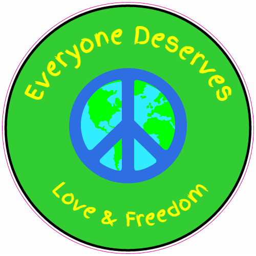 Buy this Everyone Deserves Love and Freedom Earth Circle Sticker here. This Everyone Deserves Love and Freedom Earth Circle Sticker is perfect for a laptop sticker, bumper sticker, car window sticker, and just about any other surface. Be sure to check out all of our custom stickers to find more great designs.