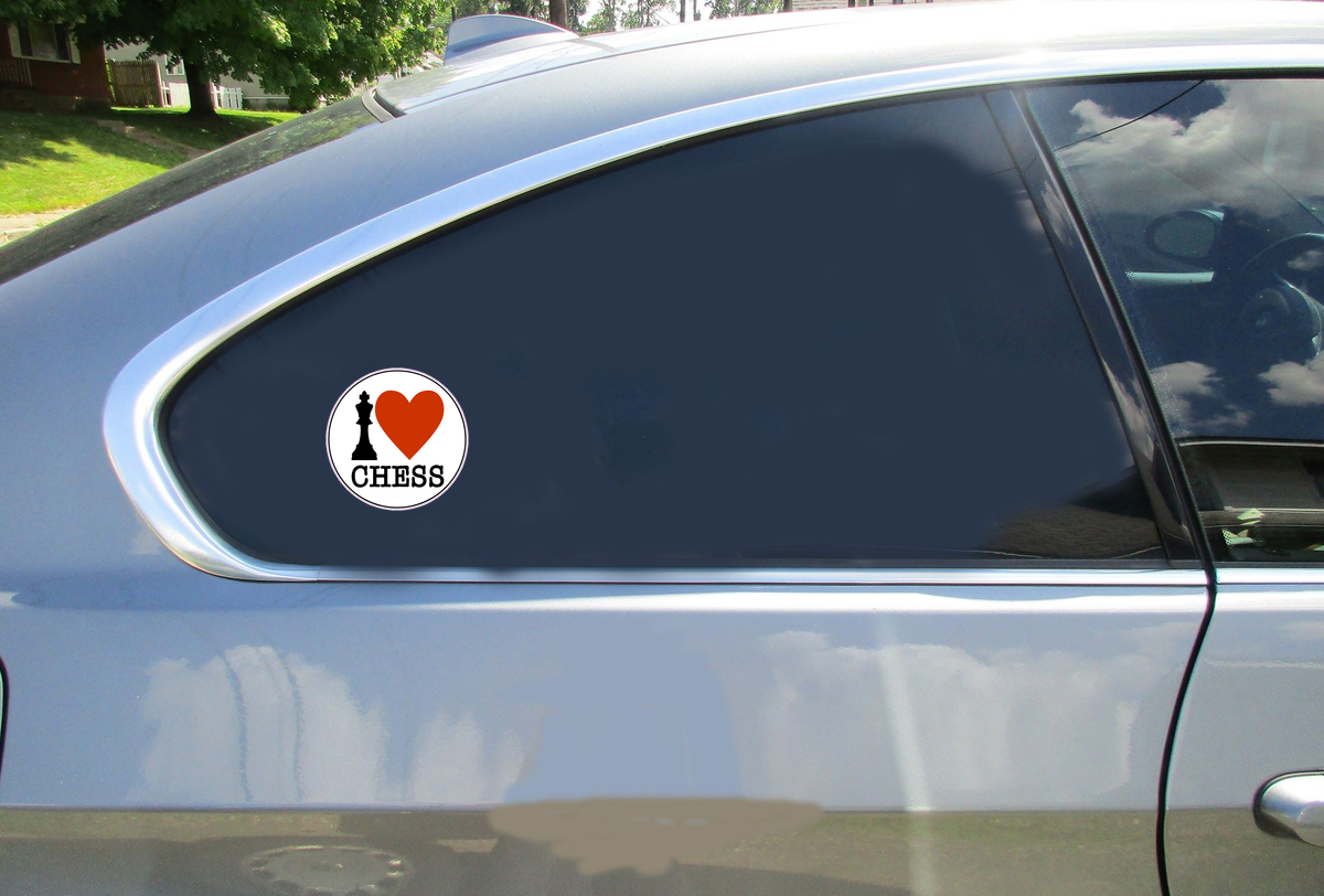 This I Love Chess Sticker is printed on high quality sticker vinyl intended for outdoor use. These high quality durable stickers will stick to almost any clean flat surface indoors or outdoors. Buy this custom I Love Chess Sticker in the size of your choice and use it for a car sticker, truck sticker, bumper sticker, laptop sticker, phone sticker, beer cooler sticker, and much more!