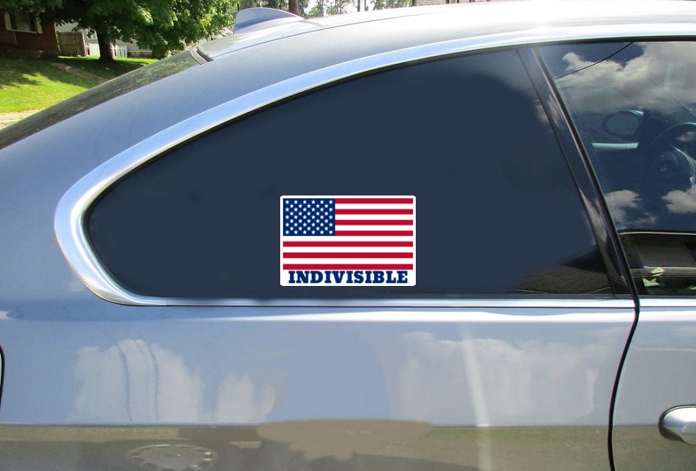 Buy this Indivisible American Flag Sticker here. All stickers are printed in the USA with high quality vinyl for indoor or outdoor use. Available in various sizes, perfect for laptops, cars, trucks, windows, and more. Usually ships in 24 hours with free shipping.