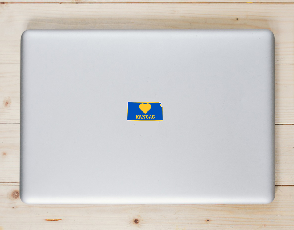 Buy this Kansas Heart State Shaped Sticker here. This Kansas Heart State Shaped Sticker is perfect for a laptop sticker, bumper sticker, car window sticker, and just about any other surface. Be sure to check out all of our custom stickers to find more great designs.