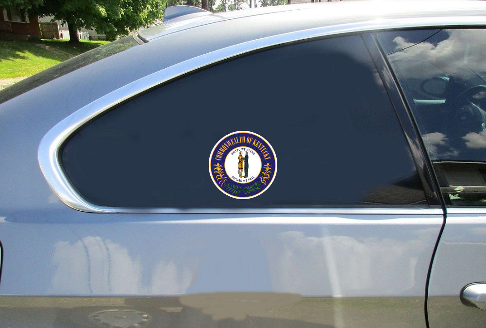 This Kentucky State Seal Sticker is perfect for a wide range of uses, including as a laptop sticker, bumper sticker, window sticker, truck sticker, car sticker, phone sticker, beer cooler sticker, skateboard sticker, bicycle sticker, hard hat sticker, tool box sticker, motorcycle sticker, locker sticker, snowboard sticker, and many other smooth, flat surfaces. It is rare, but some coated surfaces may not be suitable for long-term use.