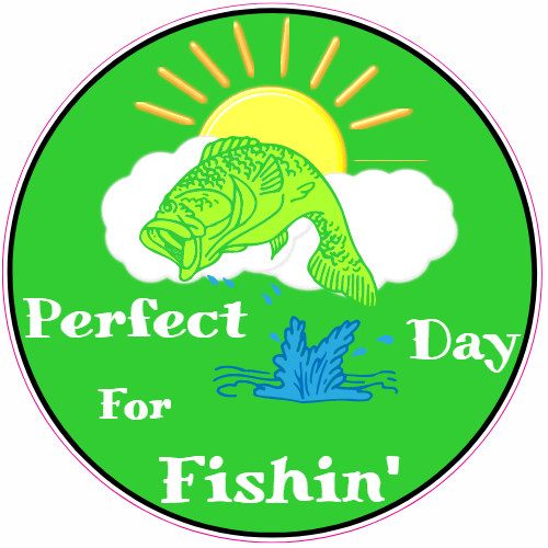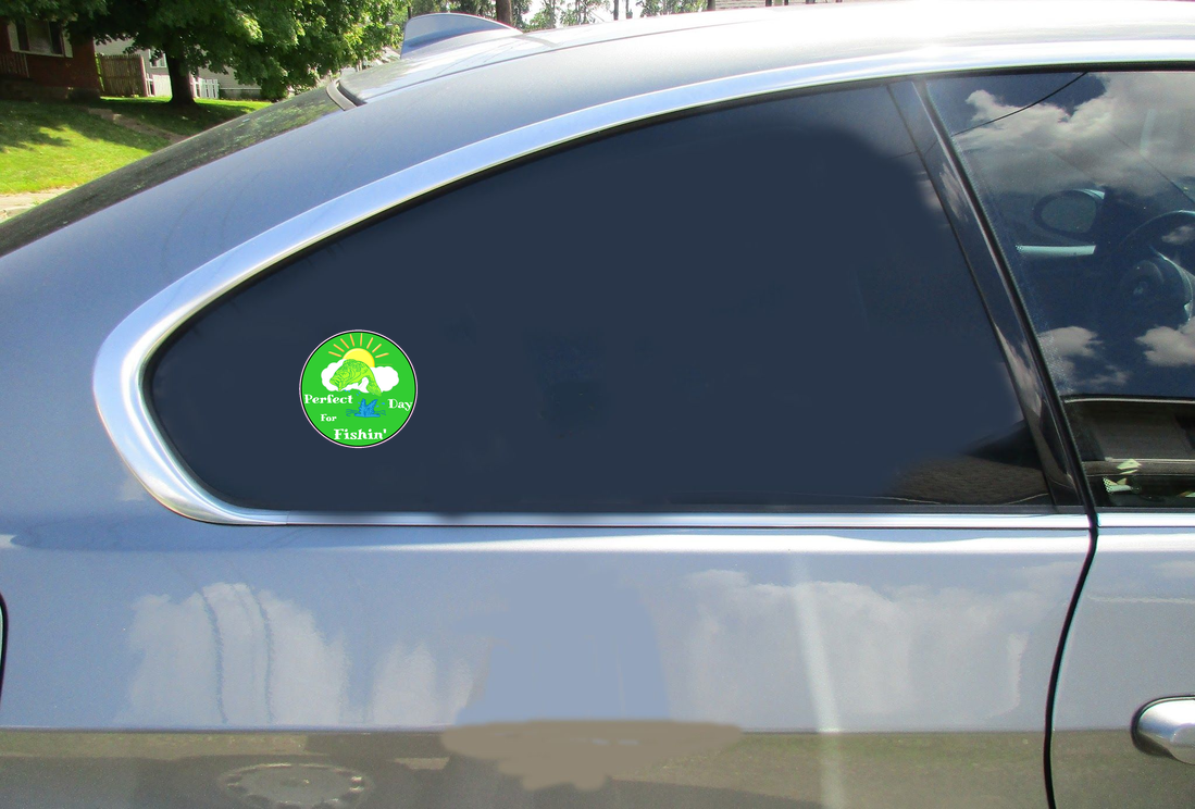 This Perfect Day For Fishin Sticker is printed on high quality sticker vinyl intended for outdoor use. These high quality durable stickers will stick to almost any clean flat surface indoors or outdoors. Buy this custom Perfect Day For Fishin Sticker in the size of your choice and use it for a car sticker, truck sticker, bumper sticker, laptop sticker, phone sticker, beer cooler sticker, and much more!