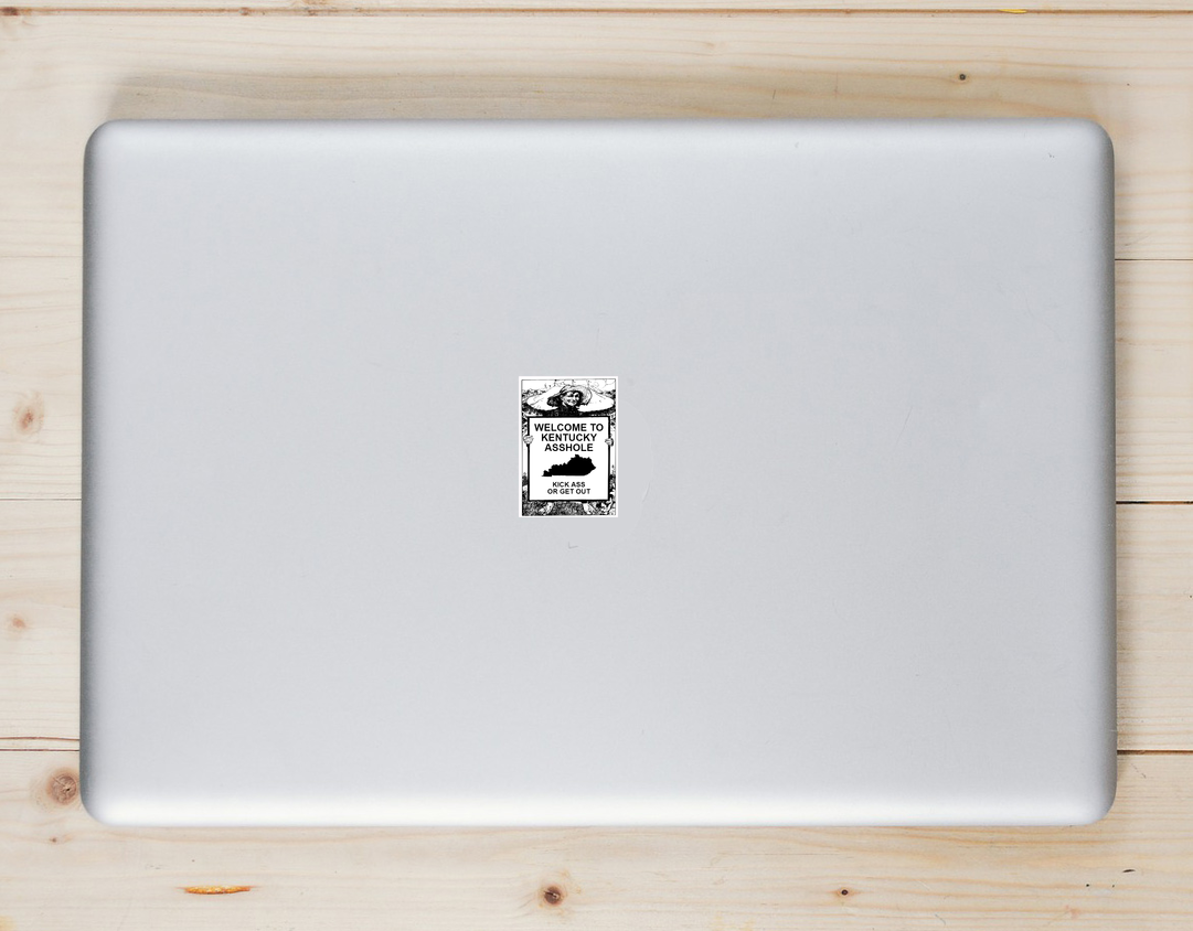 Buy this Welcome To Kentucky Asshole Funny Sticker here. This Welcome To Kentucky Asshole Funny Sticker is perfect for a laptop sticker, bumper sticker, car window sticker, and just about any other surface. Be sure to check out all of our custom stickers to find more great designs.